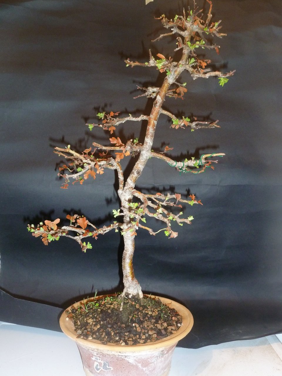 Bonsai di 22 anni di età, acquistata piantina di 2/3 anni in un vivaio online 1cm. di spessore, dopo 20 anni ha raggiunto un diametro alla base di 3 cm., essenza con sviluppo molto lento fiorisce con fiori bianchi piccoli raccolti in racemi, produce frutti piccoli rossi di piccole dimensioni 0.5 cm. persistenti sui rami dopo la caduta delle foglie.